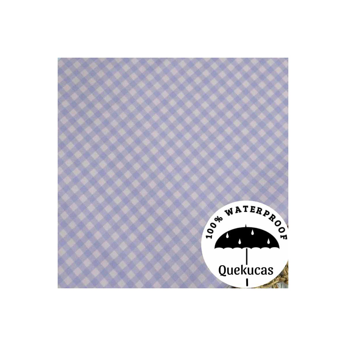Tejido canvas impermeable con estampado vichy bicolor en malva y rosa. El cuadro mide 7mm