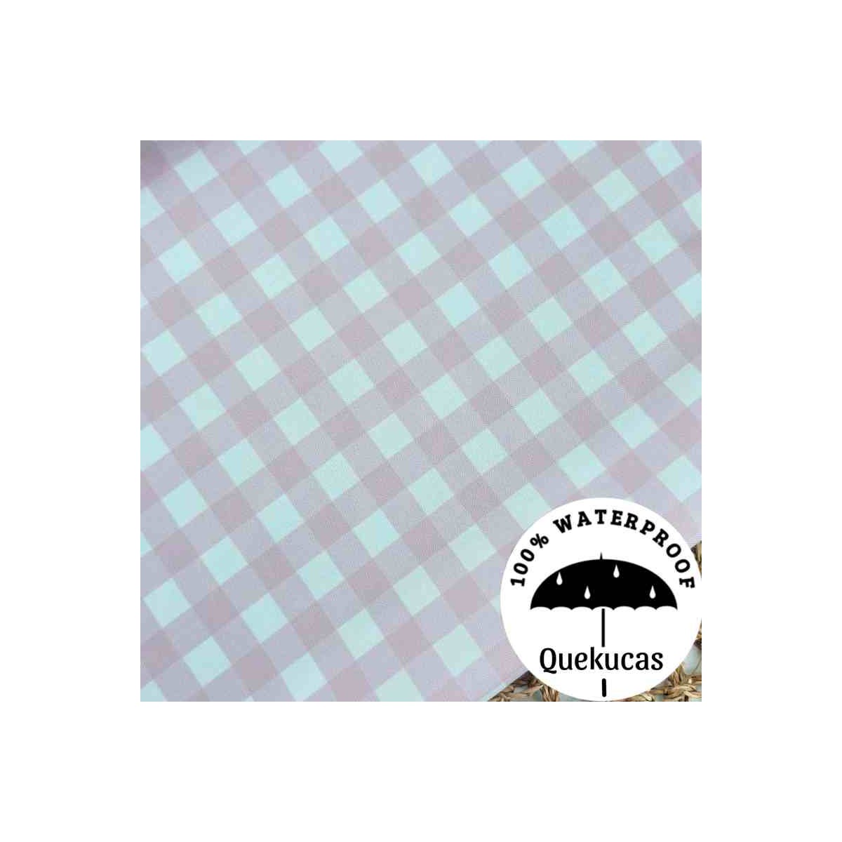 Tejido canvas impermeable con estampado de vichy en color rosa bebé. Tamaño del cuadro 1.5cm