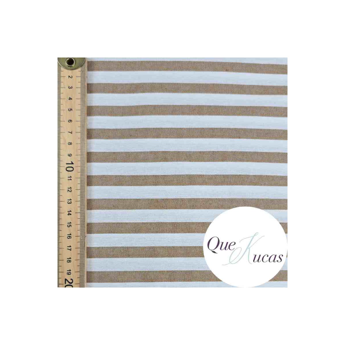 Loneta de Rayas horizontales tejidas de 1cm de ancho en color camel oscuro y blanco roto. Ancho 280cm