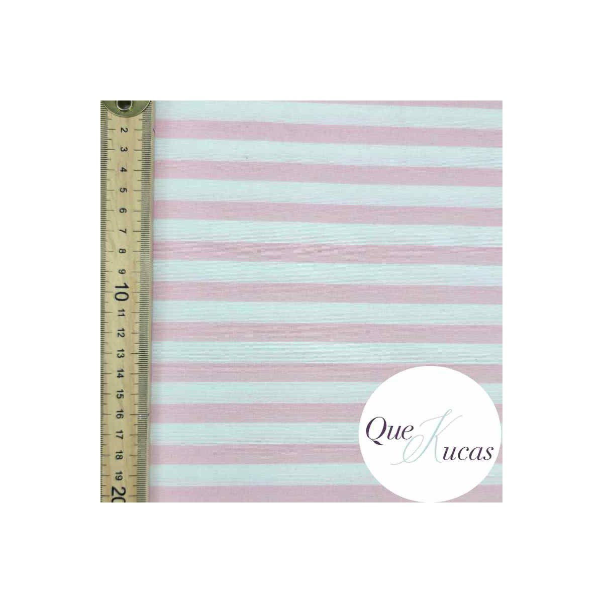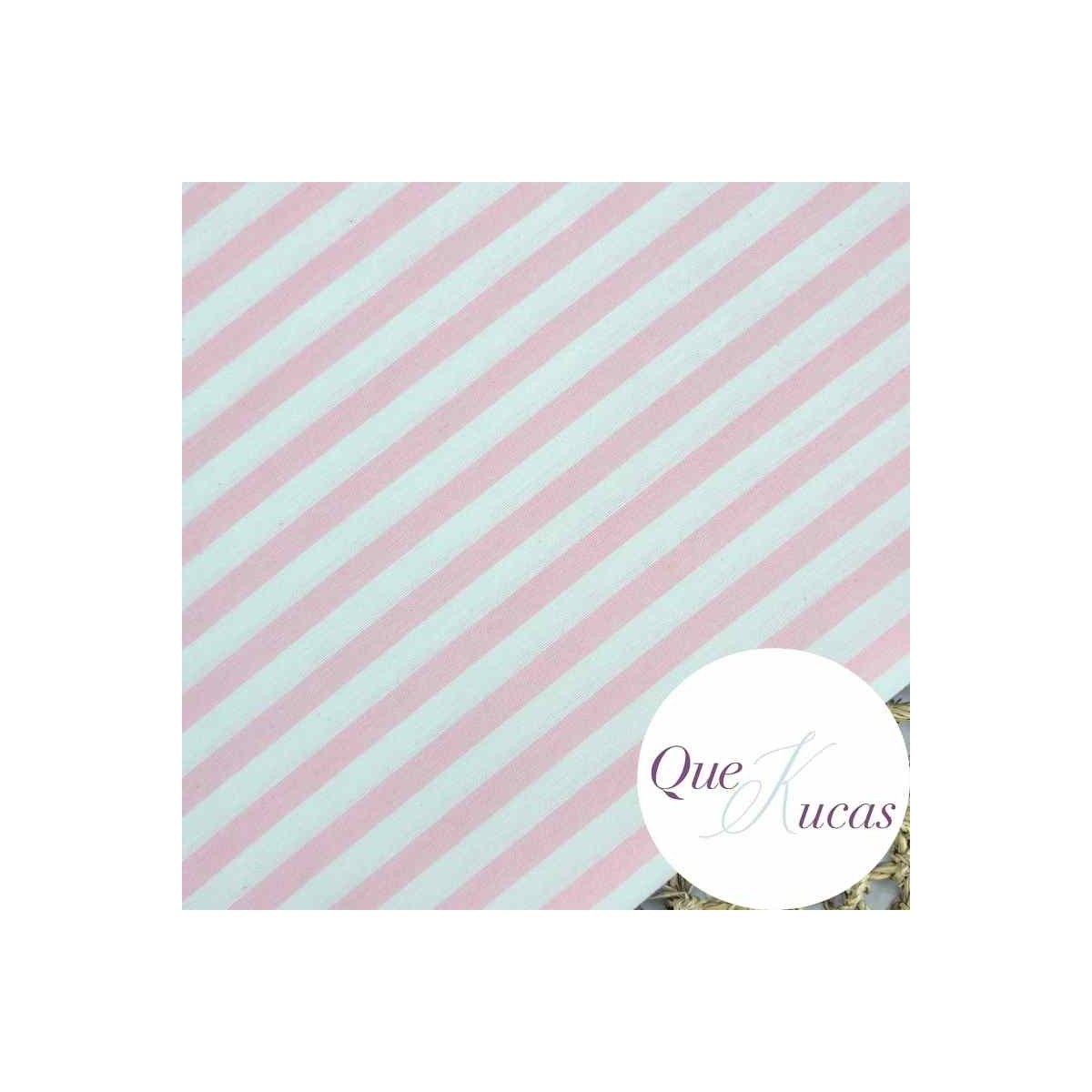 Loneta de Rayas horizontales tejidas de 1cm de ancho en color rosa y blanco roto. Ancho 280cm