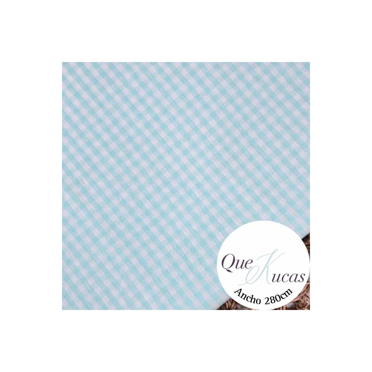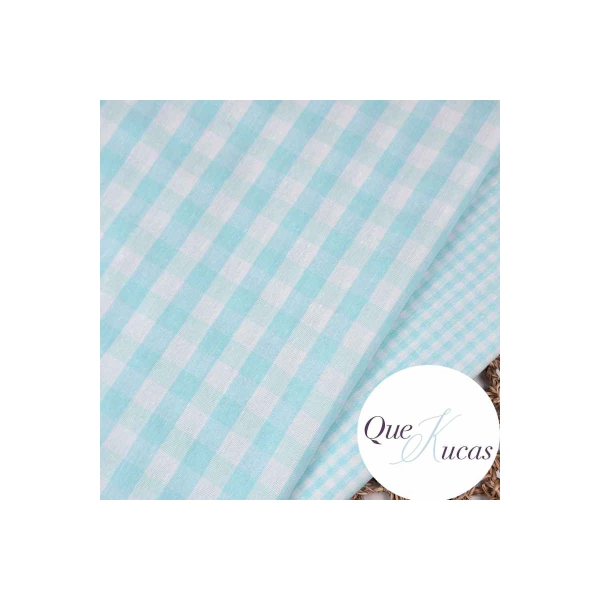 Loneta de cuadros vichy tejidos en color verde agua claro y blanco. Tamaño del cuadro 5mm.