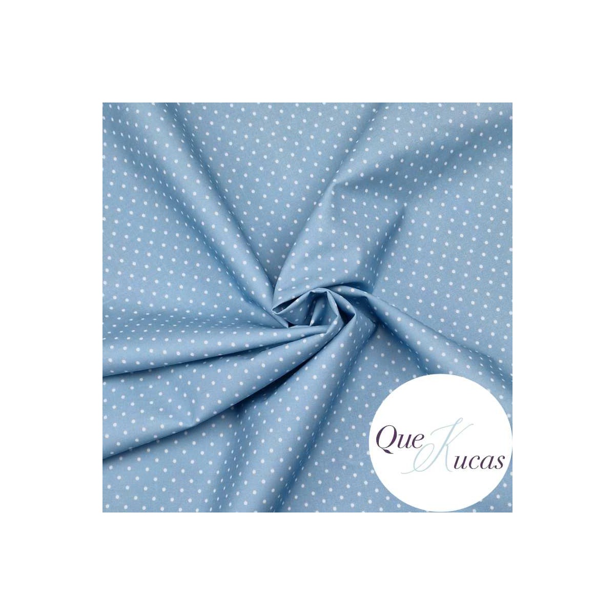 Popelín estampado con topitos blancos sobre fondo azul