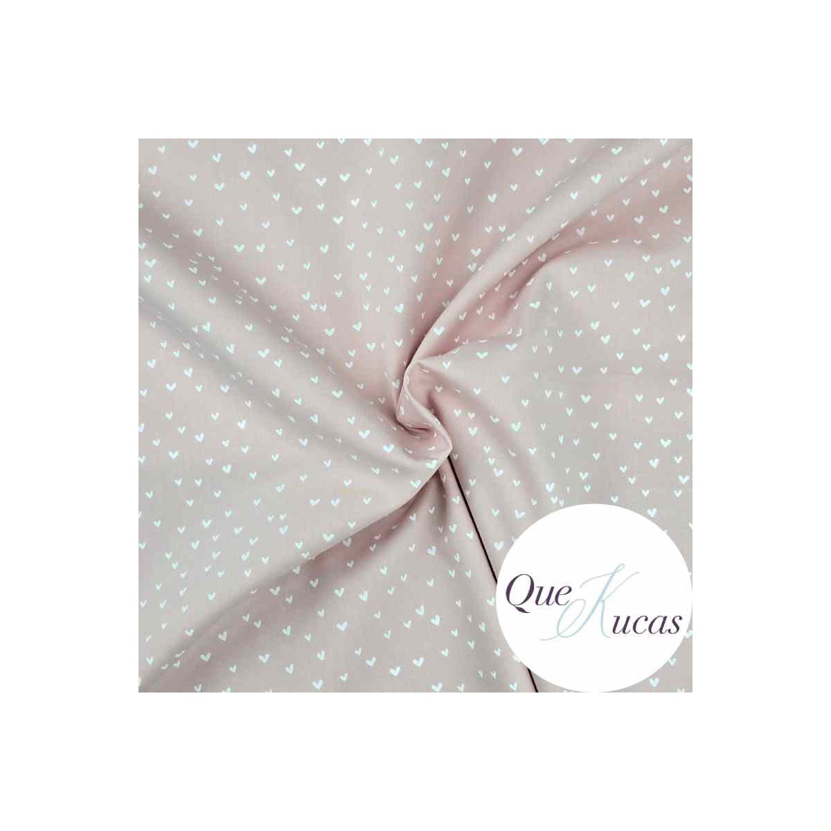 Popelín estampado con corazones blancos sobre fondo rosa