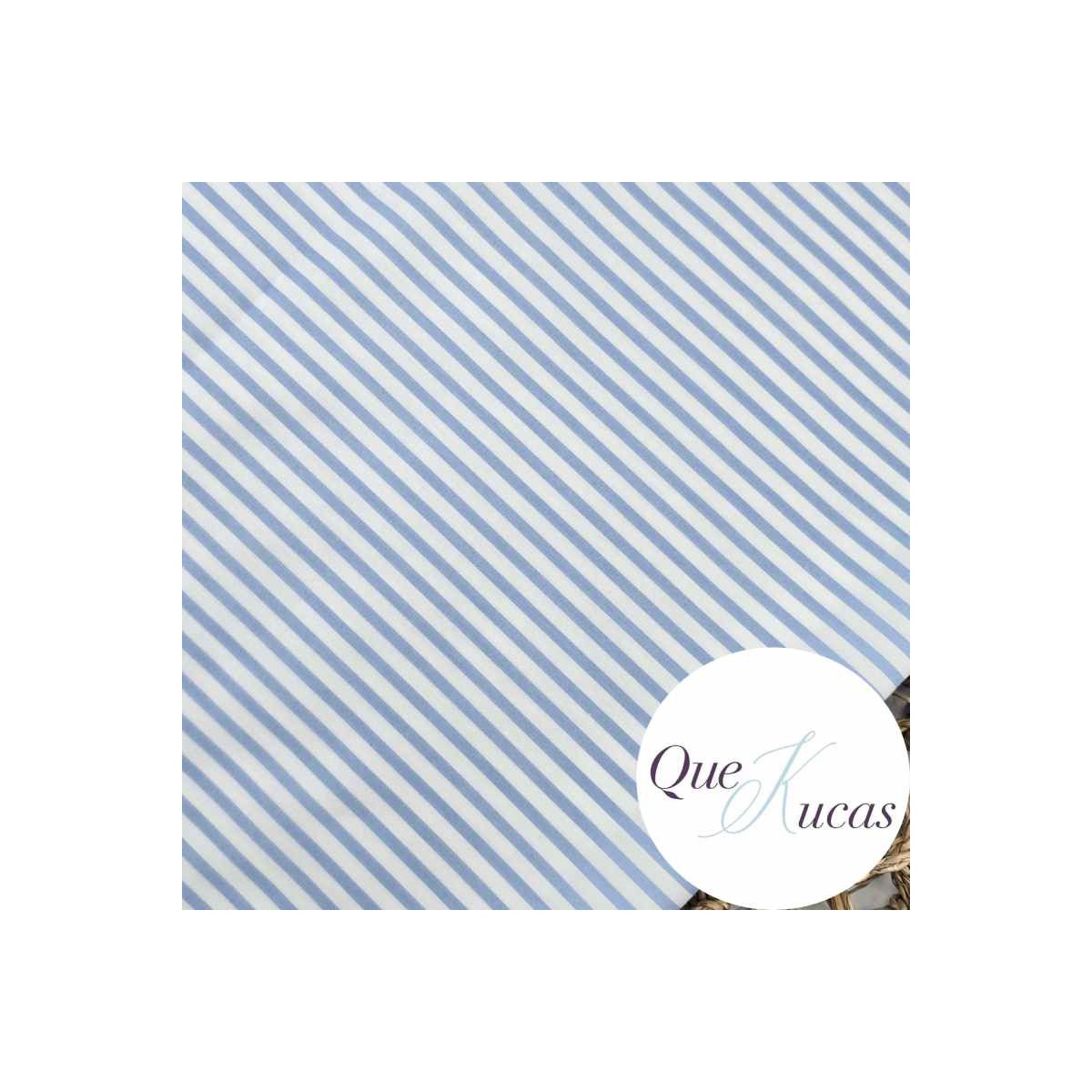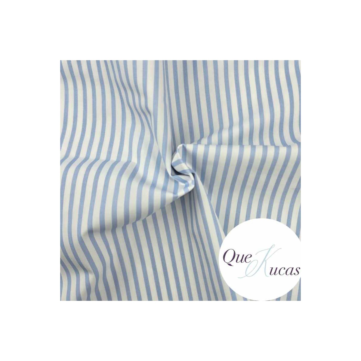 Popelín estampado de rayas verticales en azul sobre fondo blanco