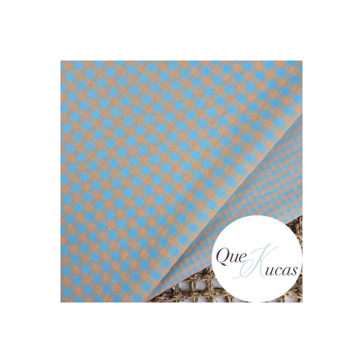 Vichy Bicolor en color albaricoque y azul. El cuadro mide 4mm