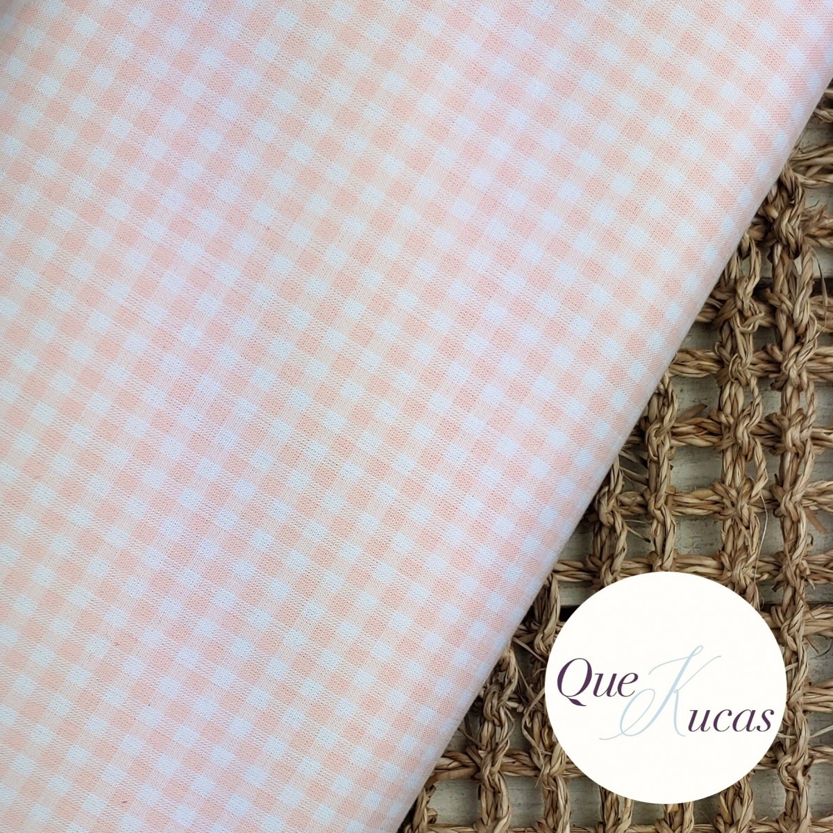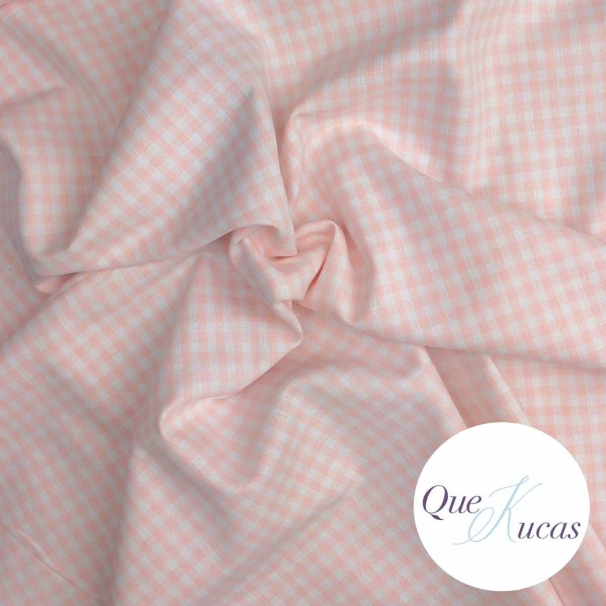 Tela de Vichy de algodón en color salmón. Tamaño del cuadro 5mm