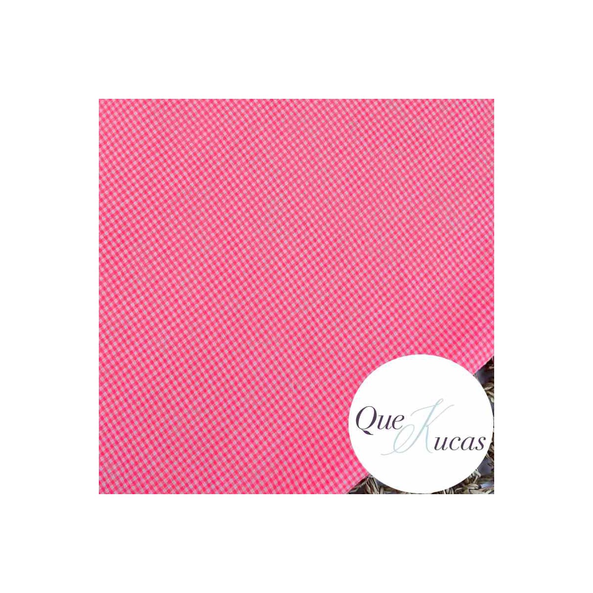 Tejido vichy seersucker en color rosa flúor y blanco natural